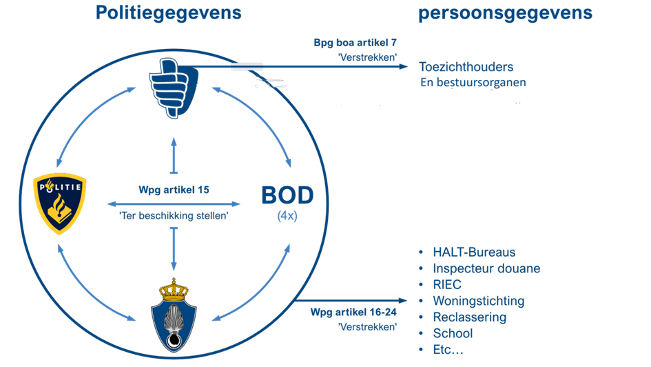 Sinds 2019 is de Wpg ook op de gegevensverwerking door een boa van toepassing. Artikel 7 van het Besluit politiegegevens boa (Bpgboa) werd (ook door mij) kortweg uitgelegd als: verstrekken aan de toezichthouder. Maar er zijn dus meer mogelijkheden.